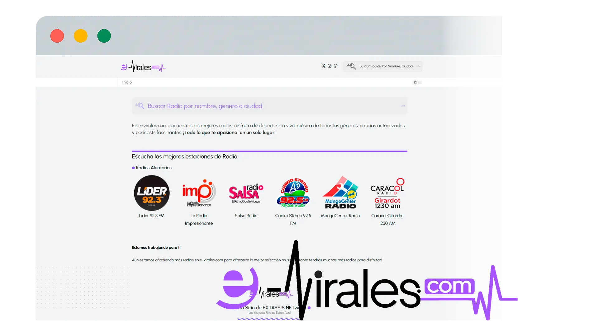 Descubre las mejores emisoras de radio en un solo lugar. Visita e-virales.com y disfruta de la música y programación de nuestros clientes, que transmiten en vivo para ti.